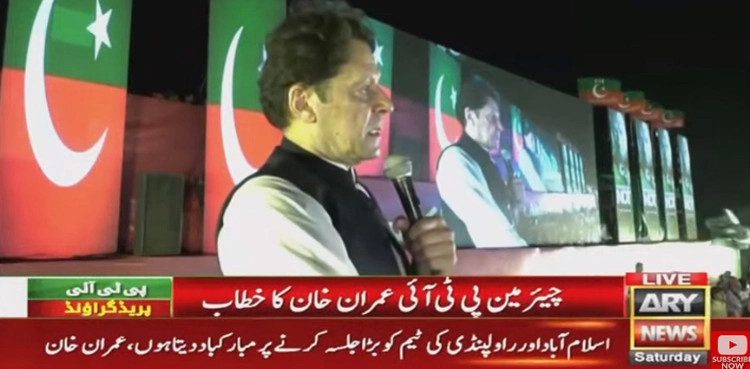 Imran Khan congratulated PTI Islamabad and Rawalpindi chapters for organising a successful public gathering at Parade Ground today. The PTI chairman said that he has never seen such a big crowd in the twin cities.